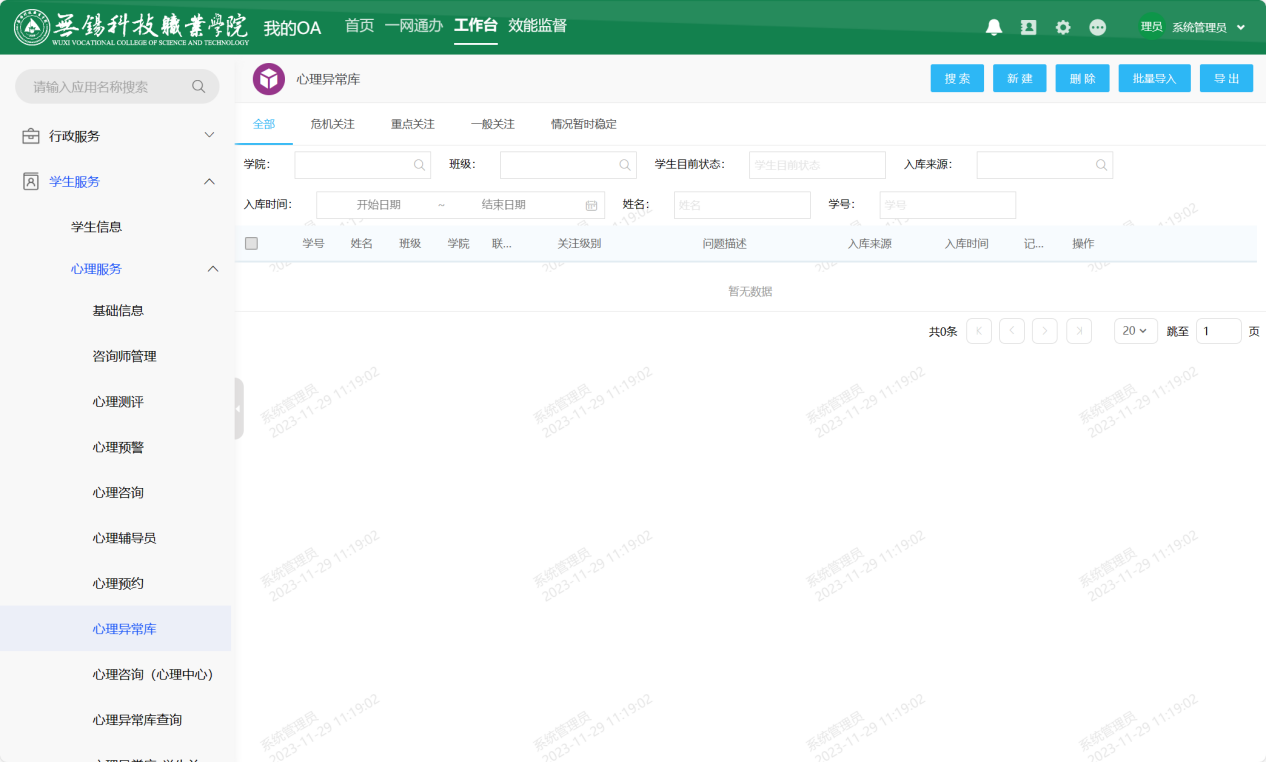 维护在校心理问题学生,可对学生进行关注登记留档;